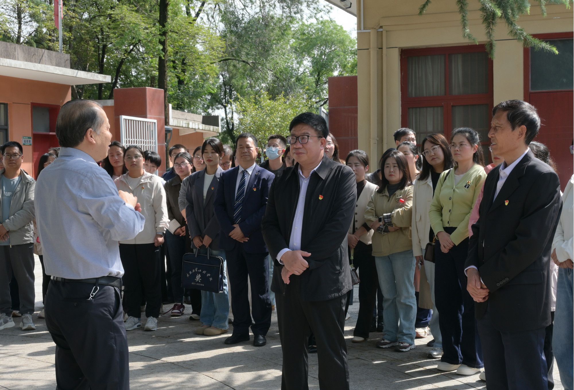 随后,学习团前往西北农林科技大学3号楼参观校史馆。在闫祖书的深入介绍下,学习团了解到3号楼这座标志性建筑的历史价值——它不仅见证了学校从建校初期到“双一流”建设的关键发展阶段,更以校史馆为核心载体,留存着历代西农人“教书育人、科研报国”的精神印记。