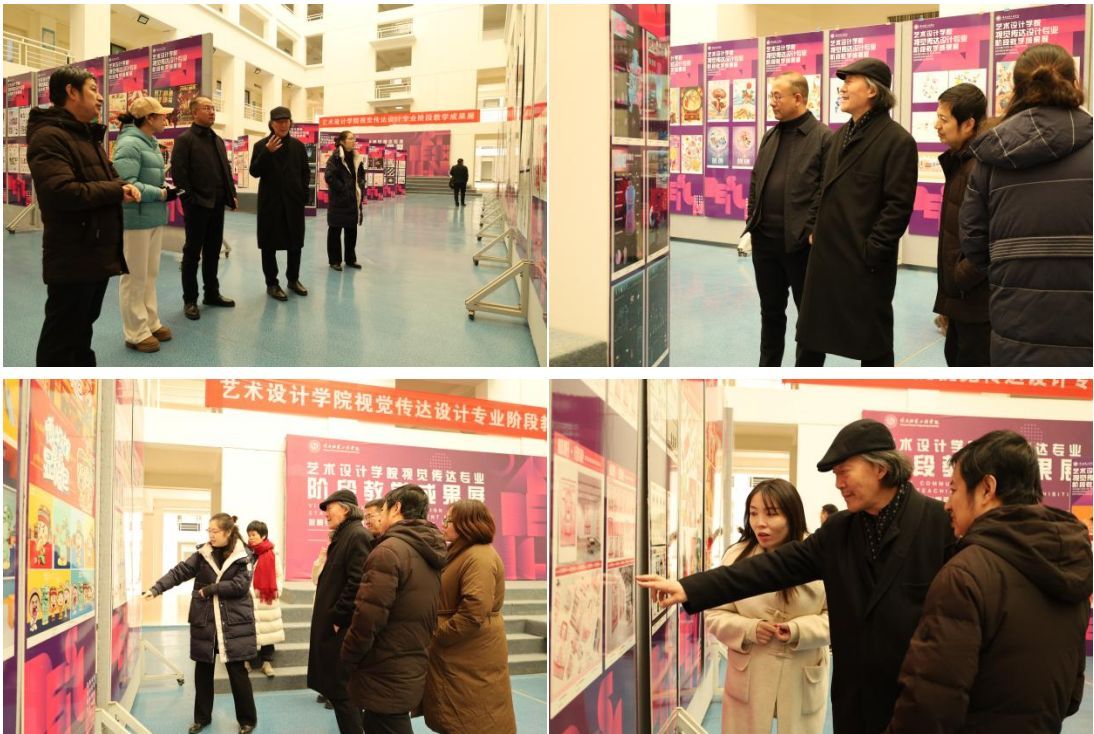 在展览过程中,学院领导对参展作品进行了细致观摩与专业点评,对学生作品中展现出的创意深度与实践能力给予充分肯定,并提出指导意见,强调要继续坚持以学生为中心的教学理念,深化产教融合,推动课程内容与行业需求紧密衔接。同时鼓励师生深挖地域文化特色,强化设计服务社会的功能,在实践中锤炼创新思维与专业能力,为人才培养质量提升筑牢根基。