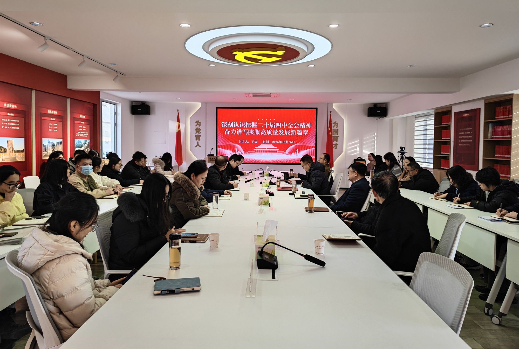 陕服新闻网讯(李文斌)为推进学校学习宣传贯彻党的二十届四中全会精神走深走实,12月25日上午,党委书记王岗在行政中心326会议室,以《深刻认识准确把握党的二十届四中全会精神,奋力谱写陕服高质量发展新篇章》为题讲专题党课。校领导、党委委员、纪委委员、二级学院党委(党总支)书记、机关党总支(直属党支部)书记、师生党员代表参加会议。党委委员、校长助理罗文谦主持会议。