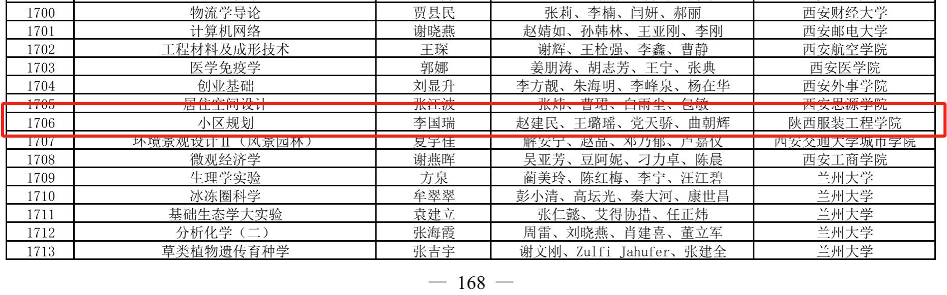 陕服新闻网讯(邵婷)在教育部公布的第三批国家级一流本科课程中,我校艺术设计学院李国瑞老师的《小区规划》课程荣列其中,标志着我校在课程建设方面取得了突破性成效,为学校高质量发展再添新彩!