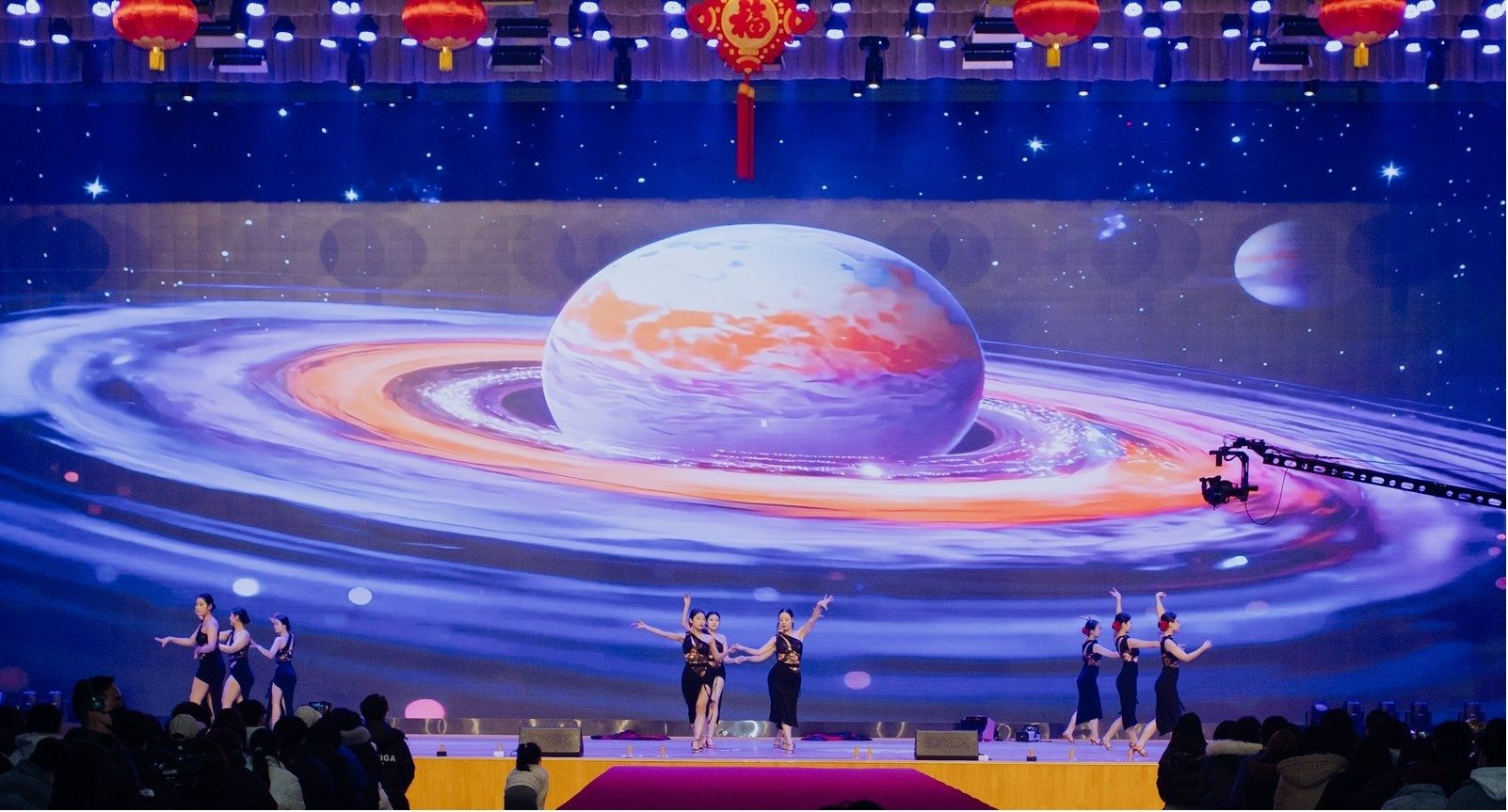气势恢宏的开场舞《追梦圆舞曲》瞬间点燃全场热情。整场晚会以“同心奋进”为主线,分为“骏马踏春启新程”“骐骥逐梦展风华”“策马建功向未来”三大篇章。晚会通过形式多样、内容丰富的文化艺术节目,礼赞新时代、欢歌新征程,全方位展现镐京文化底蕴与发展活力,为广大师生共同迎接充满希望的2026年营造了浓厚的元旦新春文化氛围。