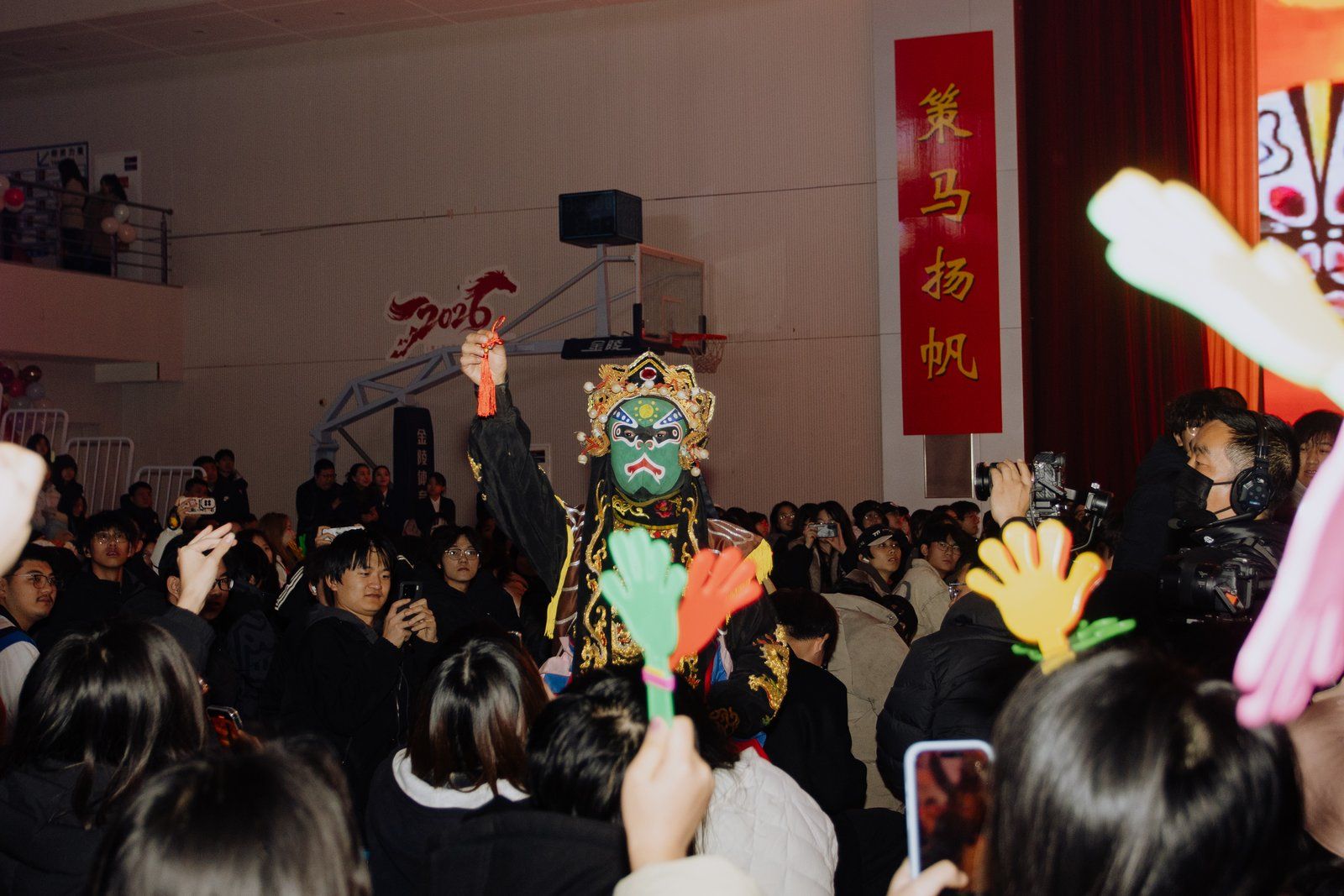 吕明董事长向全体师生送上新年祝福并讲话。他指出,过去一年,镐京集团高校以党的二十届四中全会精神为指引,坚持“内涵发展、科技强校”,教学科研提质增效,高质量发展迈出坚实步伐;展望2026,我们将锚定建设未来镐京大学核心战略,聚力三校六区建设,以创新驱动引领转型,以共建共享惠及民生,奋力书写“十五五”开局新篇章!吕明董事长深情演唱《天海一心》《战马》两首歌曲,还为同学们发放马年吉祥物玩偶,勉励两校师生在 2026年继续秉持守正创新理念,拥抱AI时代,拥抱健康生活,协同共享、逐梦前行,以更加昂扬的姿态共创辉煌。